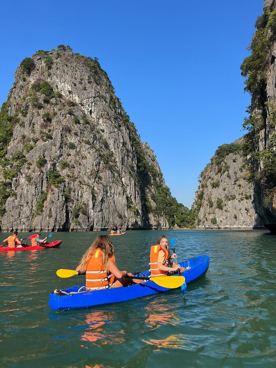 13h00: Cruise 4 hours through a maze of islets amid dramatic natural scenery, visit Thien Cung & Dau Go Grottoes, Fishing villages, Dinh Lu Huong islet, fighting Cock islets before cruising back to the harbour then get on bus back to Hanoi.